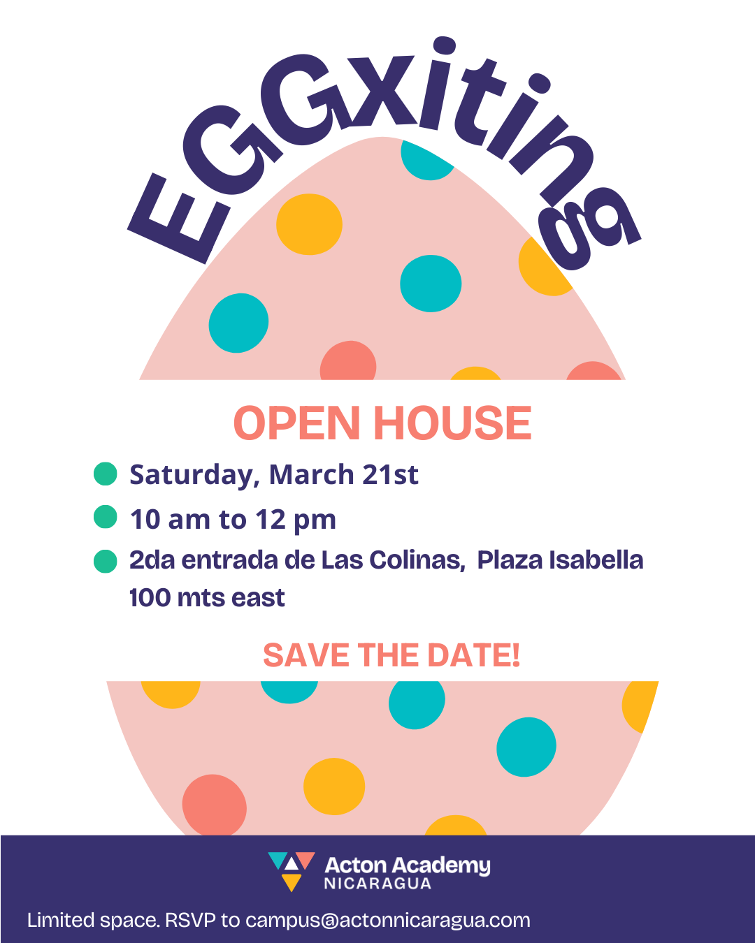 Are you curious about Acton Academy Nicaragua and our unique approach to education? Join us for an informative session where you can learn more about our admissions process, educational model, and get all your questions answered in a dedicated Q&A session.